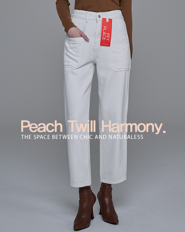 - [“Peach Twill Harmony” WHITE BAGGY DENIM PANTS ]
