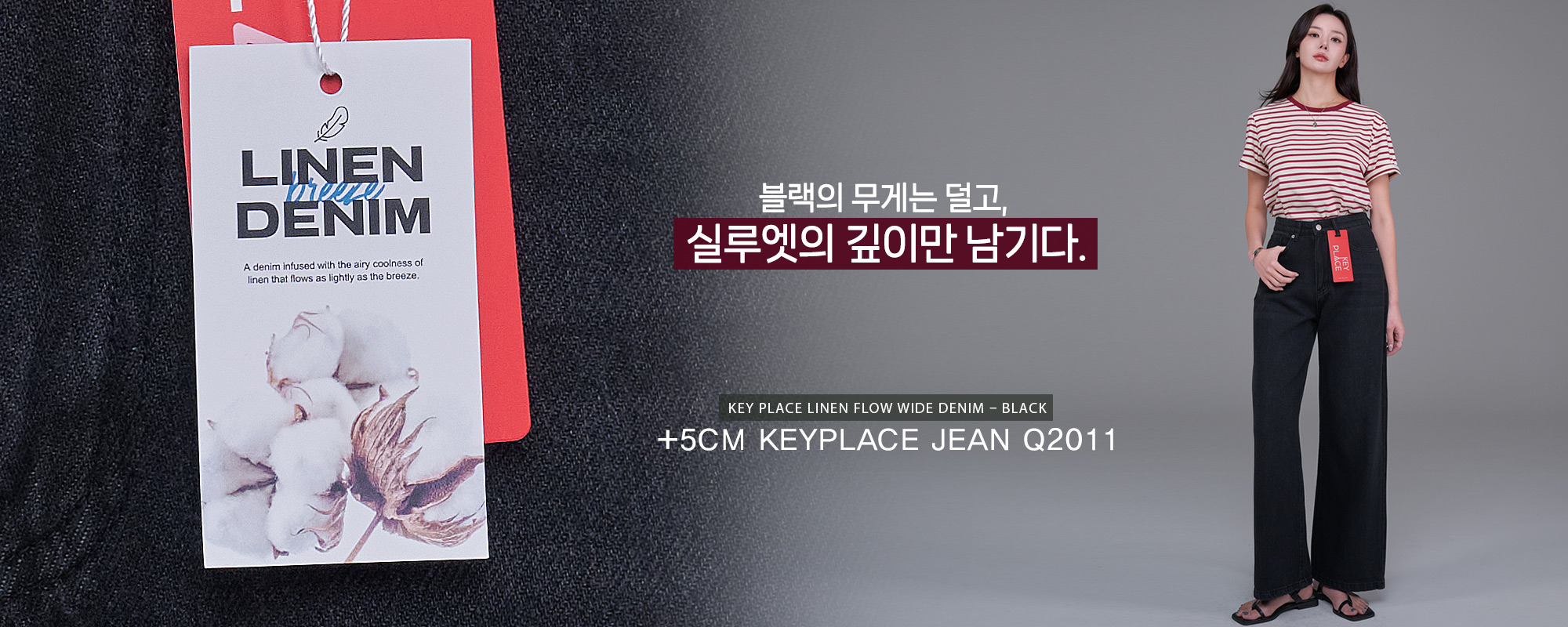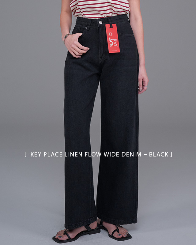 - [ KEY PLACE Linen Flow Wide Denim – Black ]