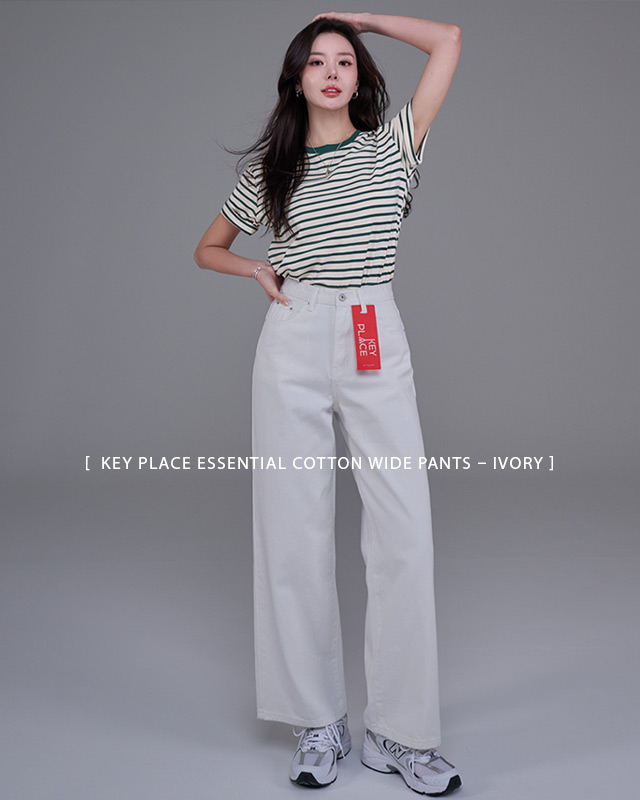- [ KEY PLACE ESSENTIAL Cotton Wide Pants – Ivory ]