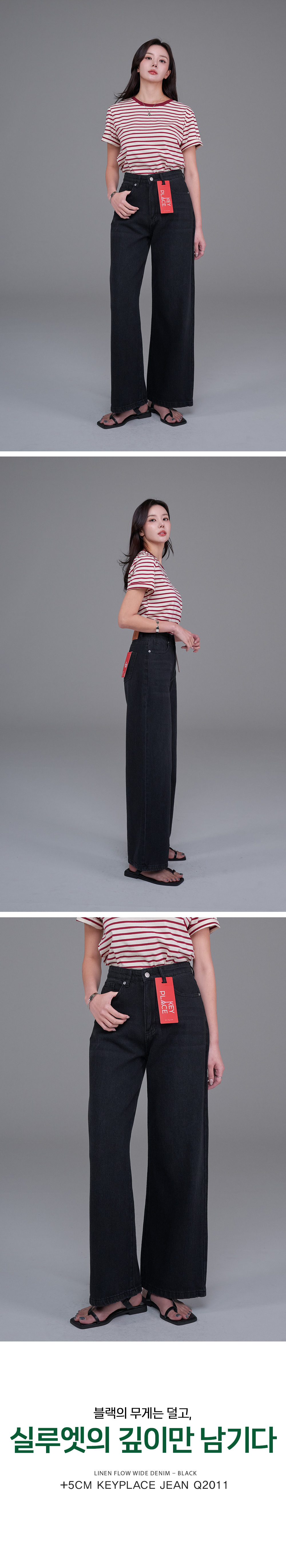 [ KEY PLACE Linen Flow Wide Denim – Black ]