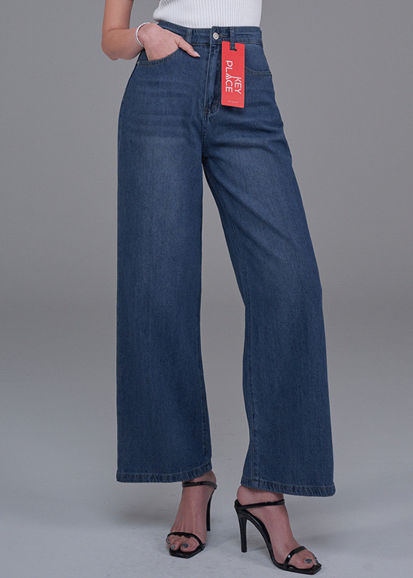 [ KEY PLACE Linen Flow Wide Denim – Deep Blue ]