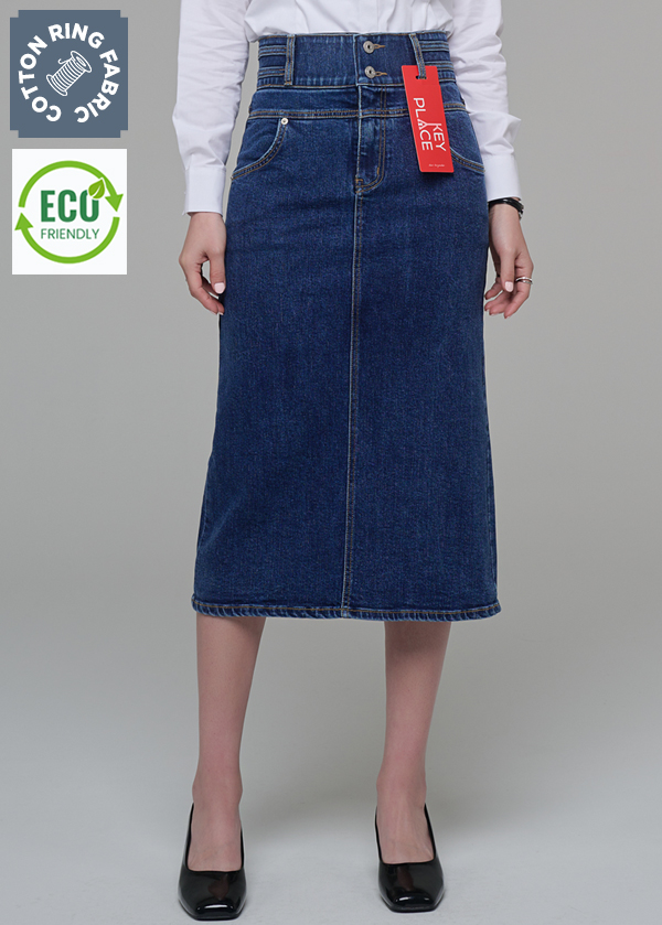 [ BLUE CLASS PEAK 3in BAND POINT DENIM SKIRT ]