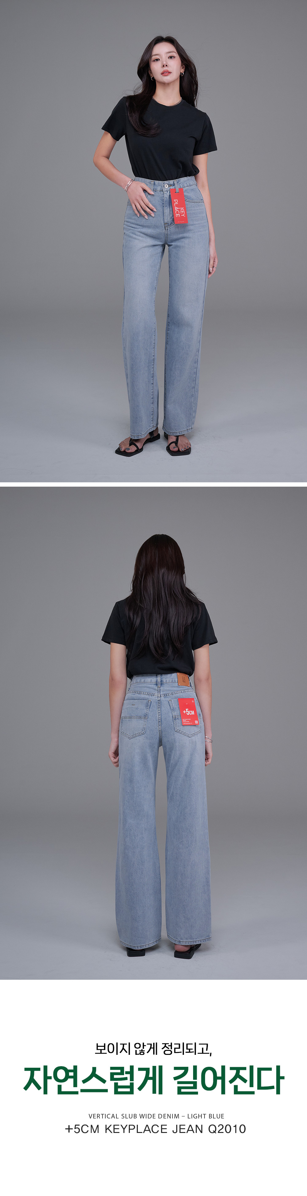 [ KEY PLACE Vertical Slub Wide Denim – Light Blue ]